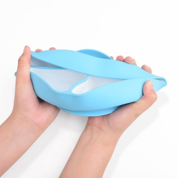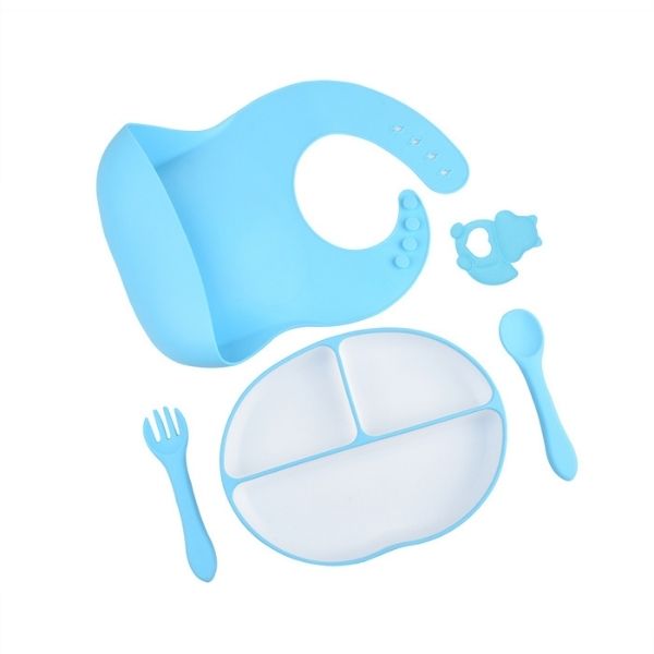Kit de Alimentación para bebé 5 piezas: Plato, Babero, Cuchara, Tenedor Y Vaso De Silicon Celeste Úpale