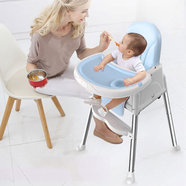 4. Resistente y estable: esta silla alta cuenta con un diseño estable de estructura trapezoidal y cuenta con un soporte de 4 patas para evitar accidentes.